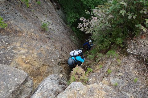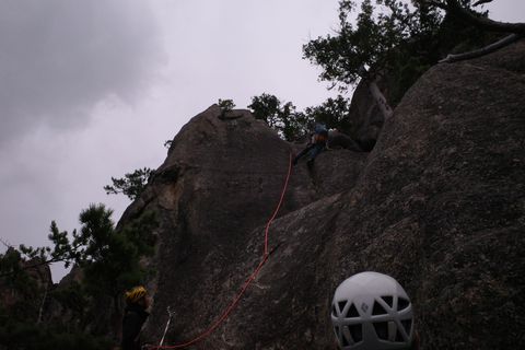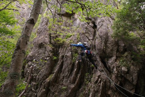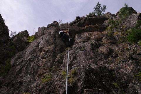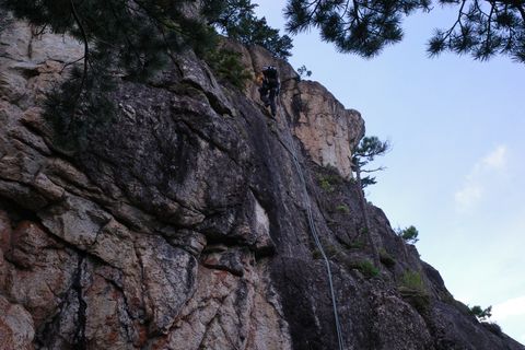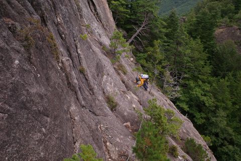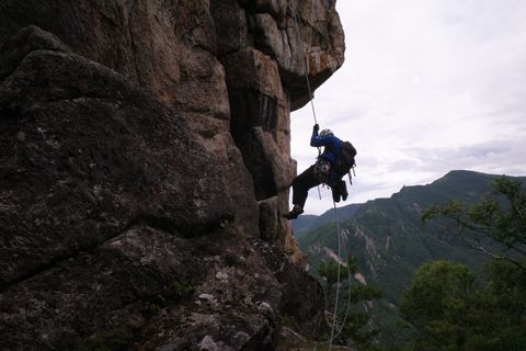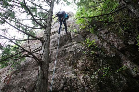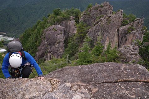 2P登った後は、空中の懸垂下降。見映え抜群。 |