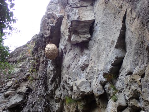 3P目の最後まで下降したところで見上げると大きなハチの巣が・・